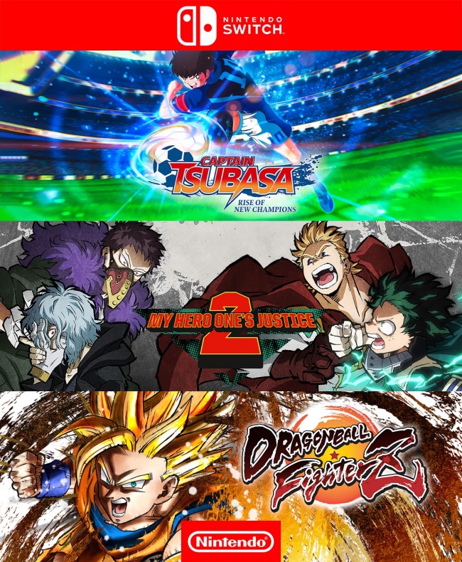3 juegos en 1 CAPTAIN TSUBASA RISE OF NEW CHAMPIONS mas MY HERO ONES JUSTICE 2 mas DRAGON BALL FIGHTERZ - NINTENDO SWITCH